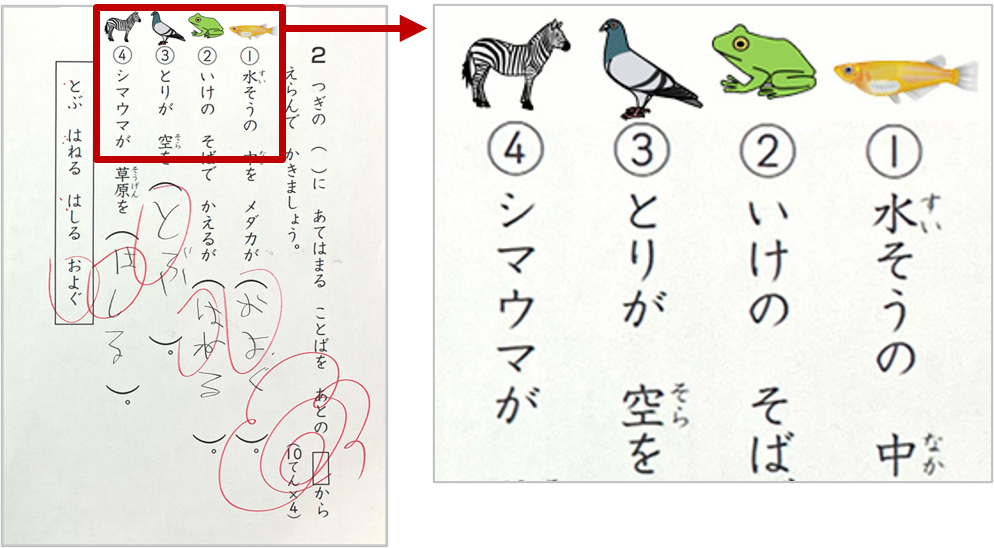 ▲イラストを添えて、知っている単語と文章をつなげる