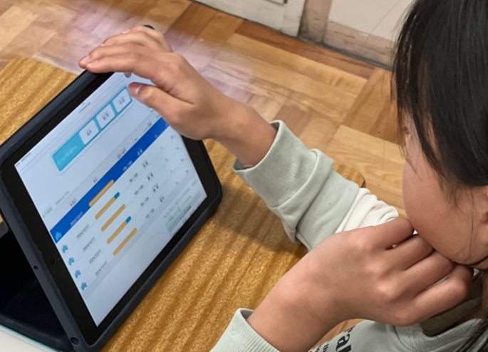 ラインズeライブラリはテスト前の苦手克服や、単元内自由進度学習の定着確認と補充に役立ちます。使い始めた頃は、児童にとって、選択肢がヒントになる安心感が大きいようでしたが、慣れるにつれ「学習メモ」で画面に書き込みをしながら考えるようにもなってきています。