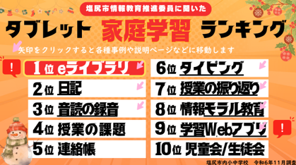 タブレットを家庭学習の充実に役立てたいと、持ち帰りを推進しています。まずは「長期休業中から」を目安とし、各小中学校の状況に合わせ実施してもらいました。のちに各学校がどのように役立てたか集計したところ、第1位がラインズeライブラリでした(下)。課題出題が手軽にでき、学習履歴を個別支援に生かせる点が家庭学習に向いていて、それがこの結果に繋がりました。