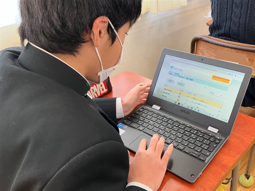 この日は、単元全体のまとめとして「確認テスト」を一斉学習モードで出題しました。「テストの得点を成績に上乗せします」との告知もあり、生徒は丁寧に問題を読み解答していました。「確認テスト」で理解度を確かめた後は齊藤先生から「×だった内容はドリルに挑戦して自分の穴を埋めていこう」と呼びかけがありました。「確認テスト」で理解度を確かめた後、結果に応じて表示される復習教材に取り組むことで、知識を定着させます。