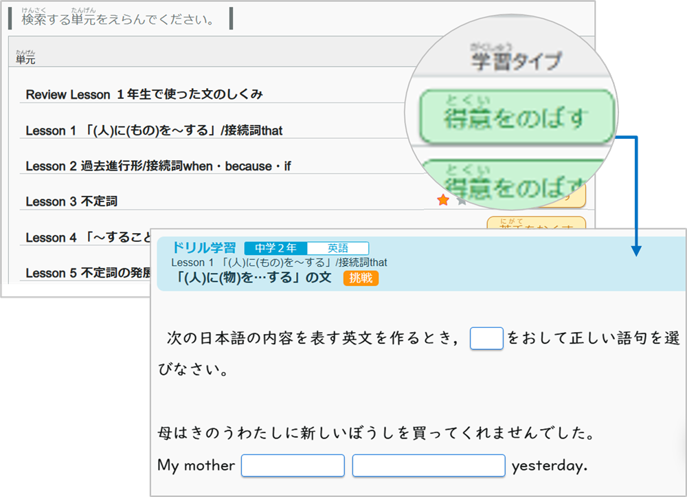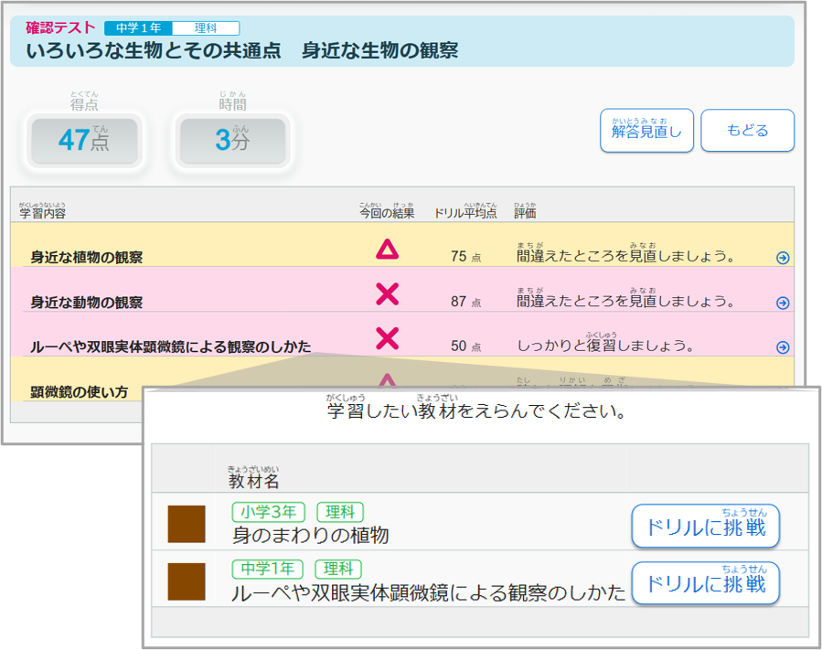 | 内容 | デジタルドリル、確認テスト、教材指定学習・一斉学習、 |