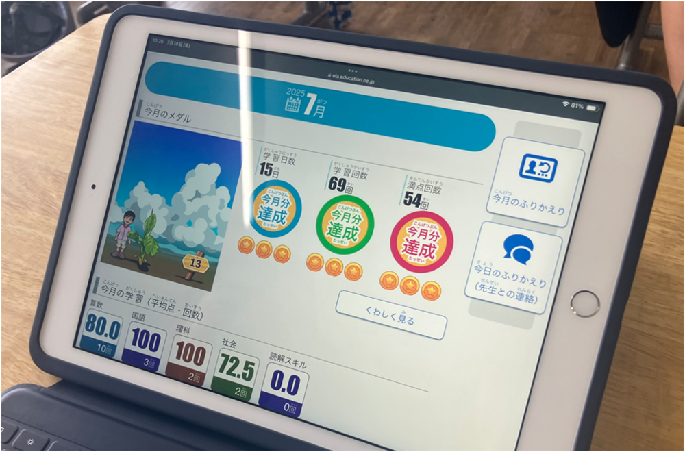 児童は隙間時間を見つけたり、家庭学習に積極的に取り入れたりと、自分なりに工夫しながらメダルを集めています。