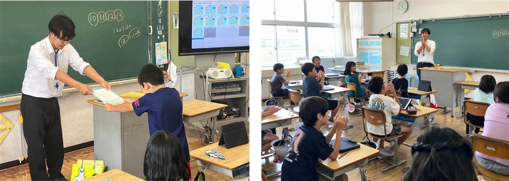 表彰式が行われた4年生の授業で「確認テスト」を効果的に利用している様子を見せていただきました。