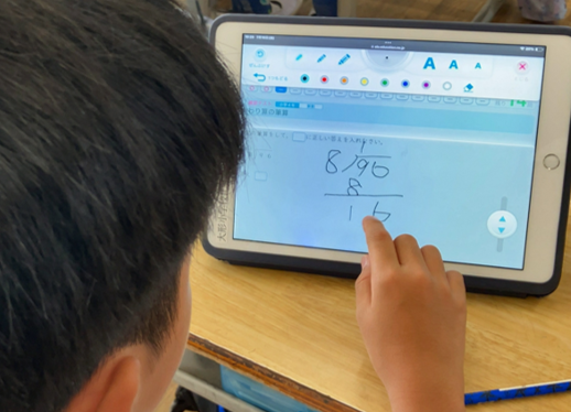 約20分の間にも、児童の進捗はそれぞれで、「解答解説を読んで見直しをしよう」「終わった人から次のドリルを始めて」と先生から声掛けがあります。皆、集中を途切れさせることなく、テストの結果を見たり、次の教材を選択してドリルに取り組んだりと、おのおののペースで進めていました。