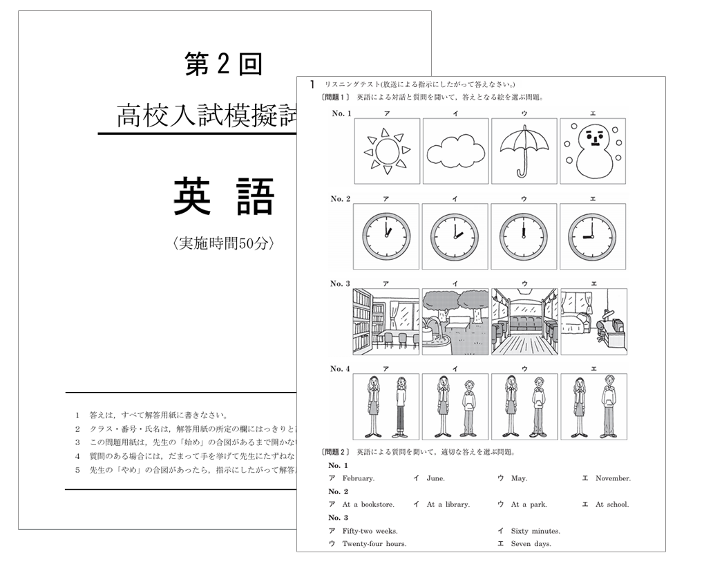 4教科(数・理・社・英)、全6回分の高校入試を想定したオリジナル模擬試験集を収録しています。