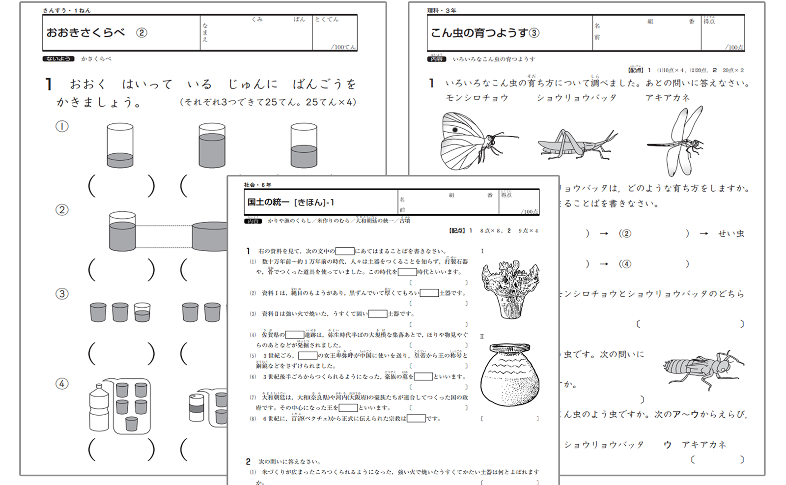 国語・算数・理科・社会の4教科のプリントを収録。学年で補強したいテーマの内容が収録された強化プリントは、個別指導に最適な教材です。