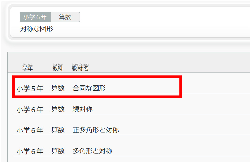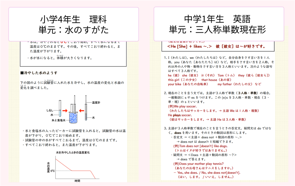 テスト範囲や学校の教科書を見ながら、該当の教材をすぐに見つけることができます。