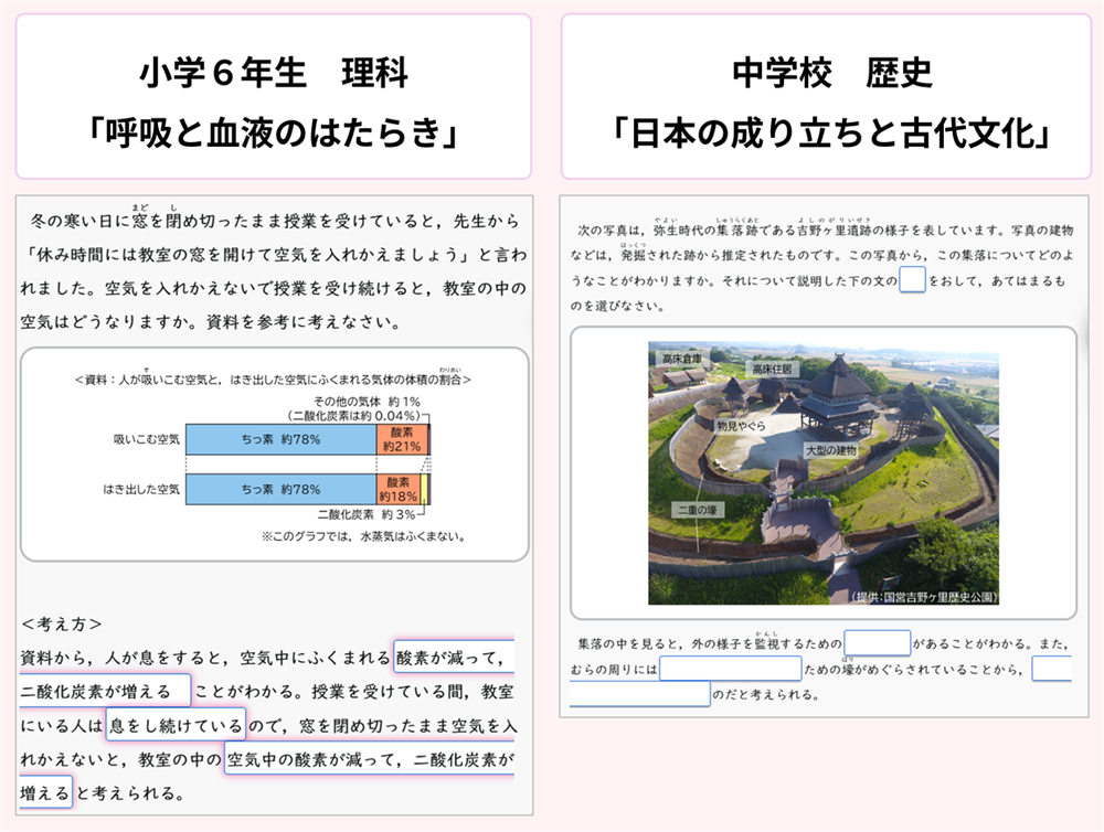 子どもたちは最初「寒いのに、なんでそんなことをするの?」と疑問に思うかもしれません。しかし、この問いを通して「私たちは呼吸をすることで酸素を使っている」、「教室の中の空気は時間が経つと酸素が減ってしまう」といったことを考え、理解するきっかけになります。つまり、日常の中にある疑問から出発し「なぜそうなるのか」「どうして必要なのか」といった因果関係を考えることで、理解を深める設計になっています。このような問題を通して、子どもたちは単に答えを当てるのではなく、「ああ、そういうことか!」と気づいたり、納得したりできます。当社はこれを単なる「思考力問題」ではなく、思考力を“育成”する問題=思考力育成問題と位置づけております。