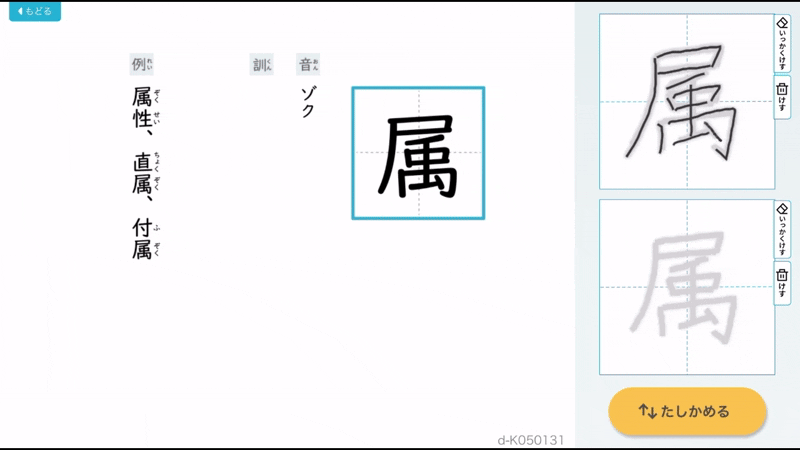 間違えてもどこで間違えたか、お手本と見比べることができるため、ICTの力で正しく漢字を習得することができます。