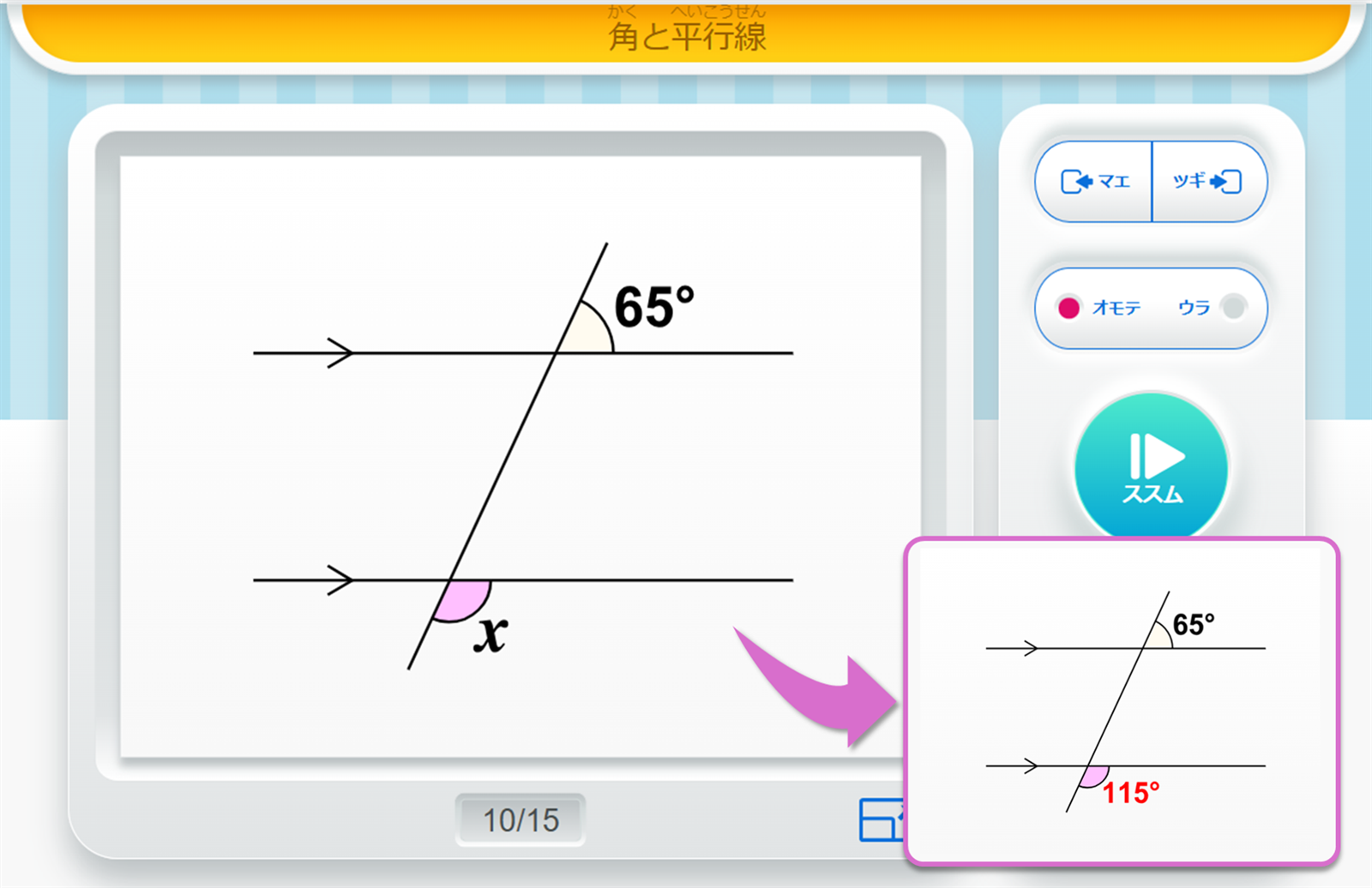 苦手な教材は学年や単元を越えて振り返ったり、得意な教材は問題の難易度を上げてさらに発展的な問題が出題されたりと、子どもたちが繰り返し最後まで学習しようという意欲をもって取り組めます。