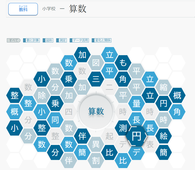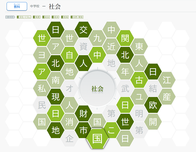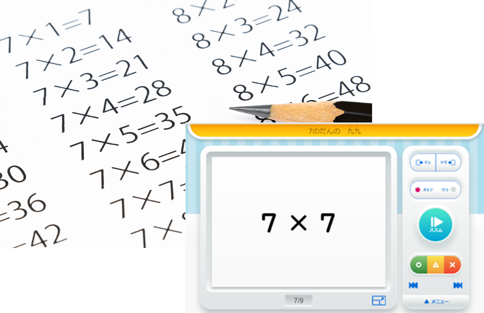 小学校は6年間、中学校は3年間の学習教材を表示しているため、色を塗りつぶす動機づけで、楽しく学習を進めることもできます。