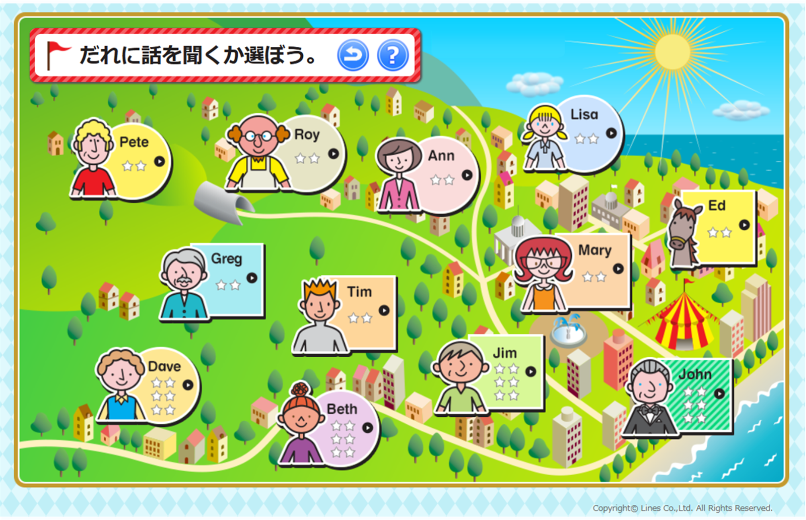 小学5,6年生を対象とした、1テーマ10分リスニング動画教材です。とある町の人々にあなたが取材をするという設定で、ユーモア満載の動画を通してリスニング力を強化します。楽しい内容になっており、さらにはリスニング力を段階的に向上させる仕組みになっているため、リスニング力が自然に伸び、学ぶ楽しさも実感できます。