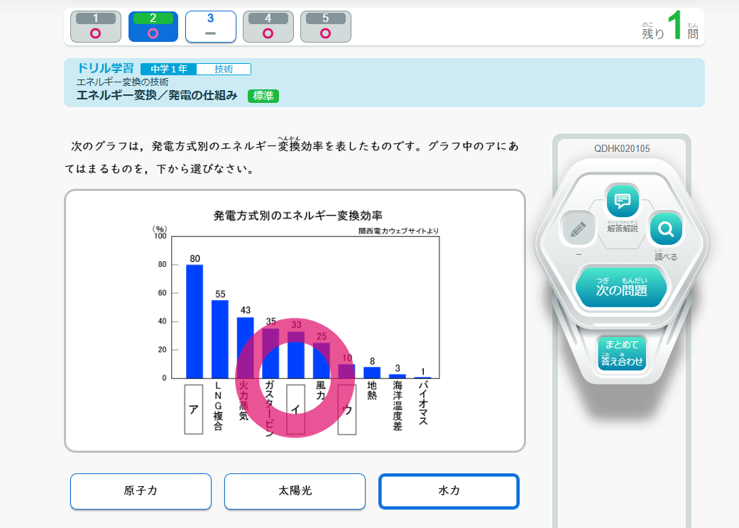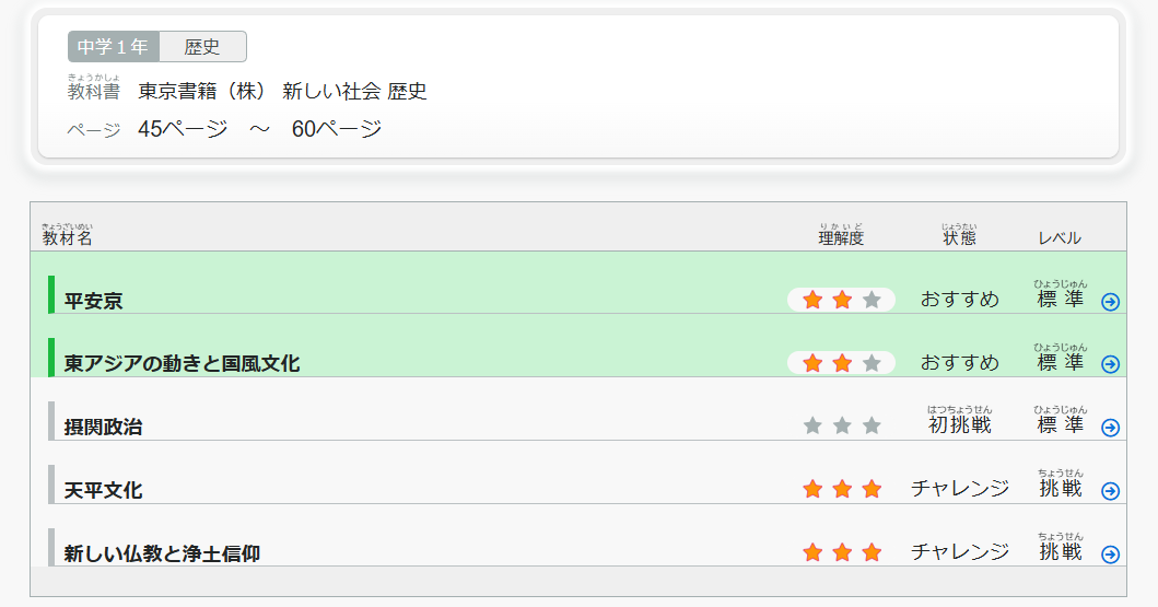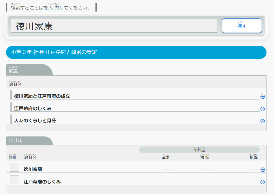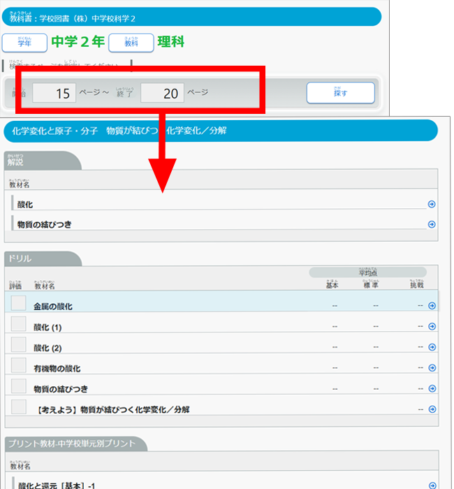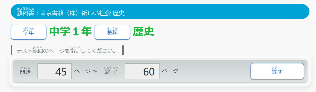 教科書準拠しているため、定期テストの対象範囲となるページをそのまま入力するだけで、該当する教材がすぐに表示され、効率的な学習が可能です。