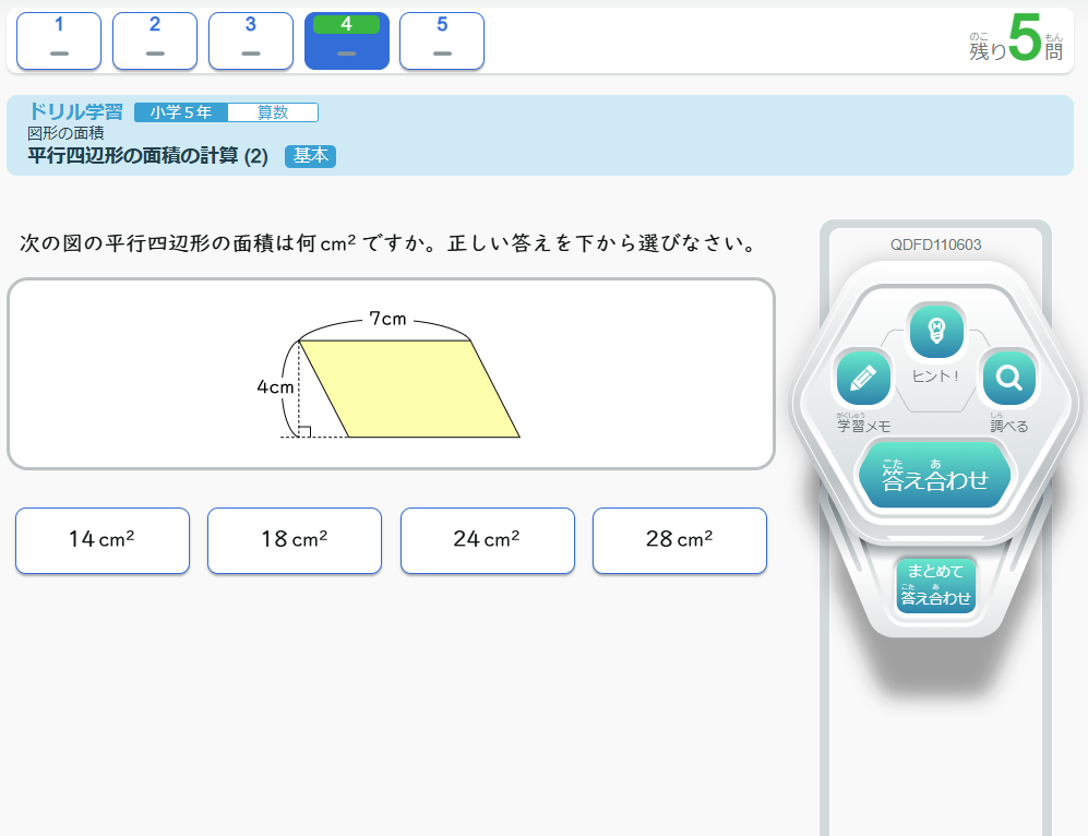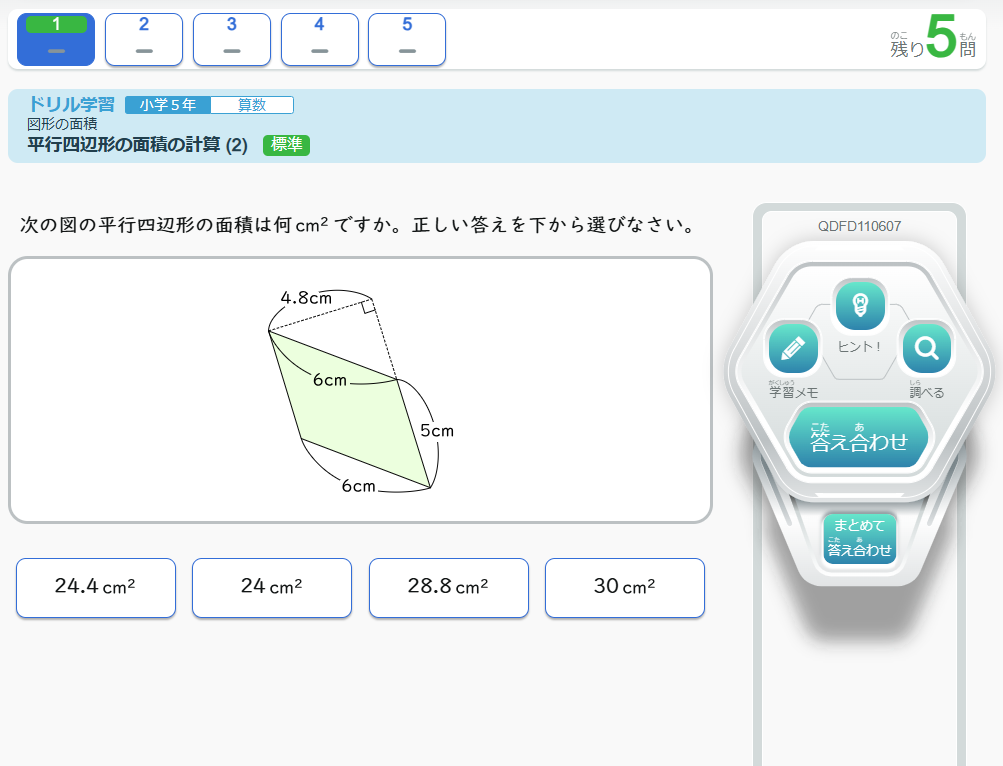さらに、タイルと難易度を選ぶことでドリルの学習画面に遷移し、未学習の教材に効率的に取り組むことができます。