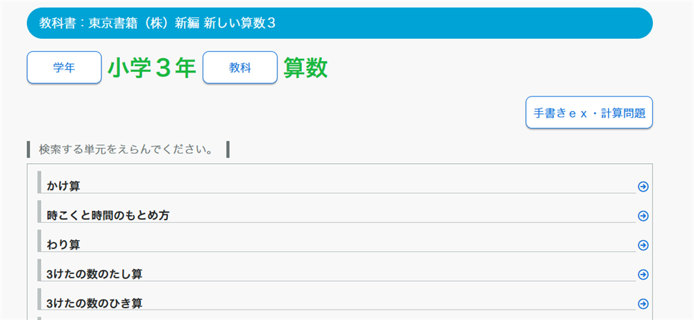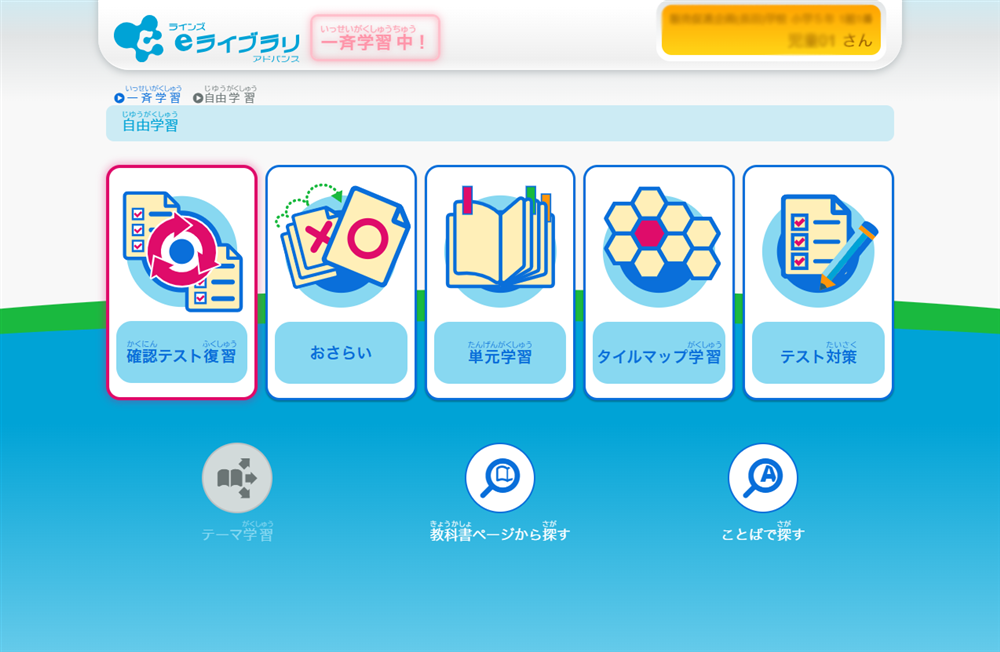 学習するコンテンツや、ドリルの学年・教科・単元も自分で選んで学習します。