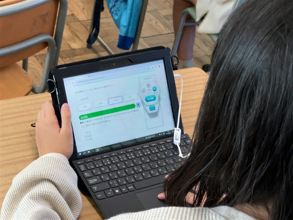 この⽇の授業では、クラスの全員で共有した計算のしかたに注意しながら、それぞれドリルに取り組んでいました。